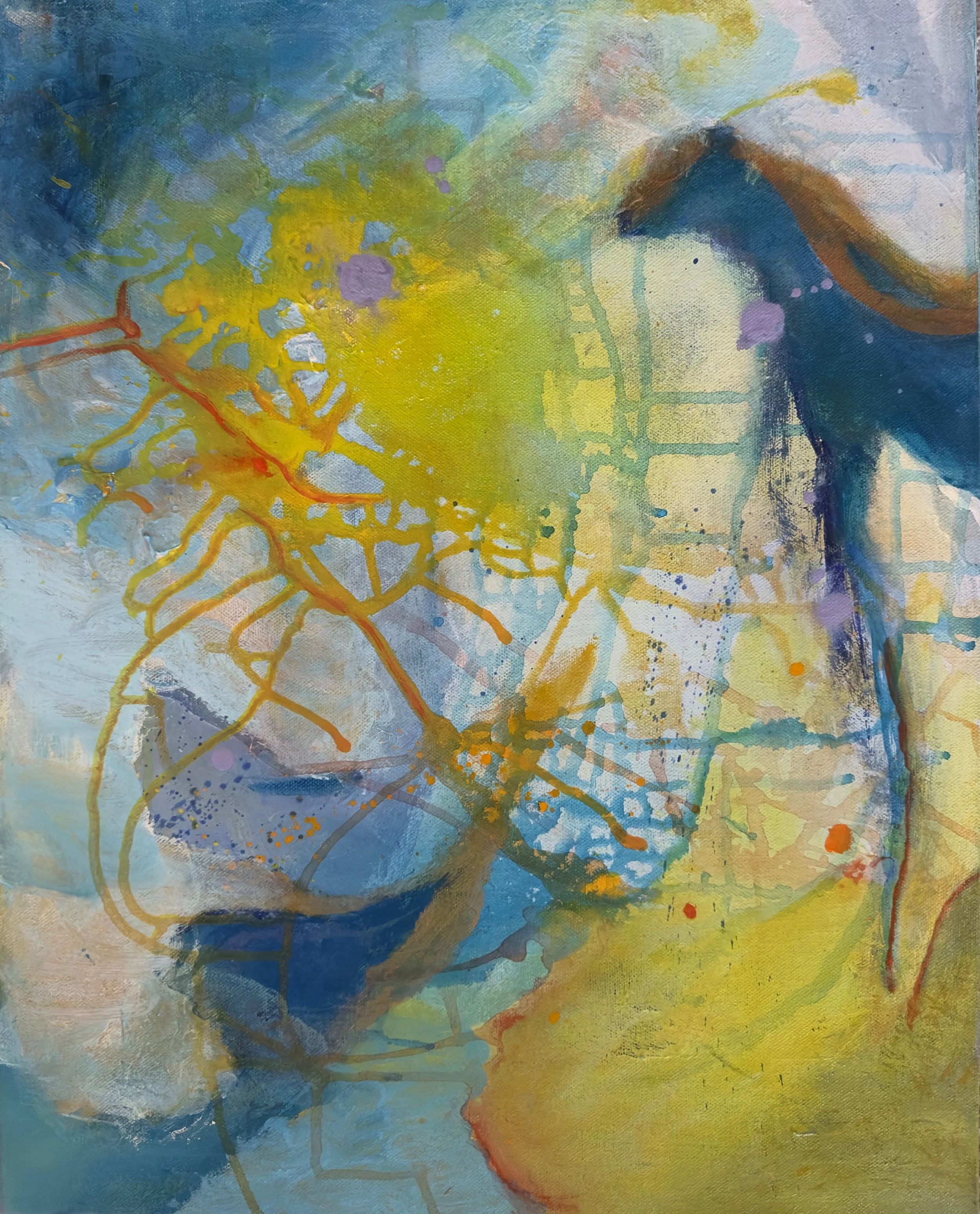 Her paintings reflect a vivid palette that blends color and line to create a composition that is independent from realism, but evokes emotion with the inspiration from unique forms, sculpture, nature and mood.